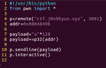 payload를 짤때 dummy값을 128만큼 해주고 그다음에 shell함수를 패킹한 값을 넣어주면 될 것이다.
